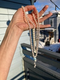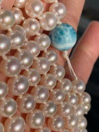 Freshwater Pearl Mala with Dominican Larimar Guru Bead